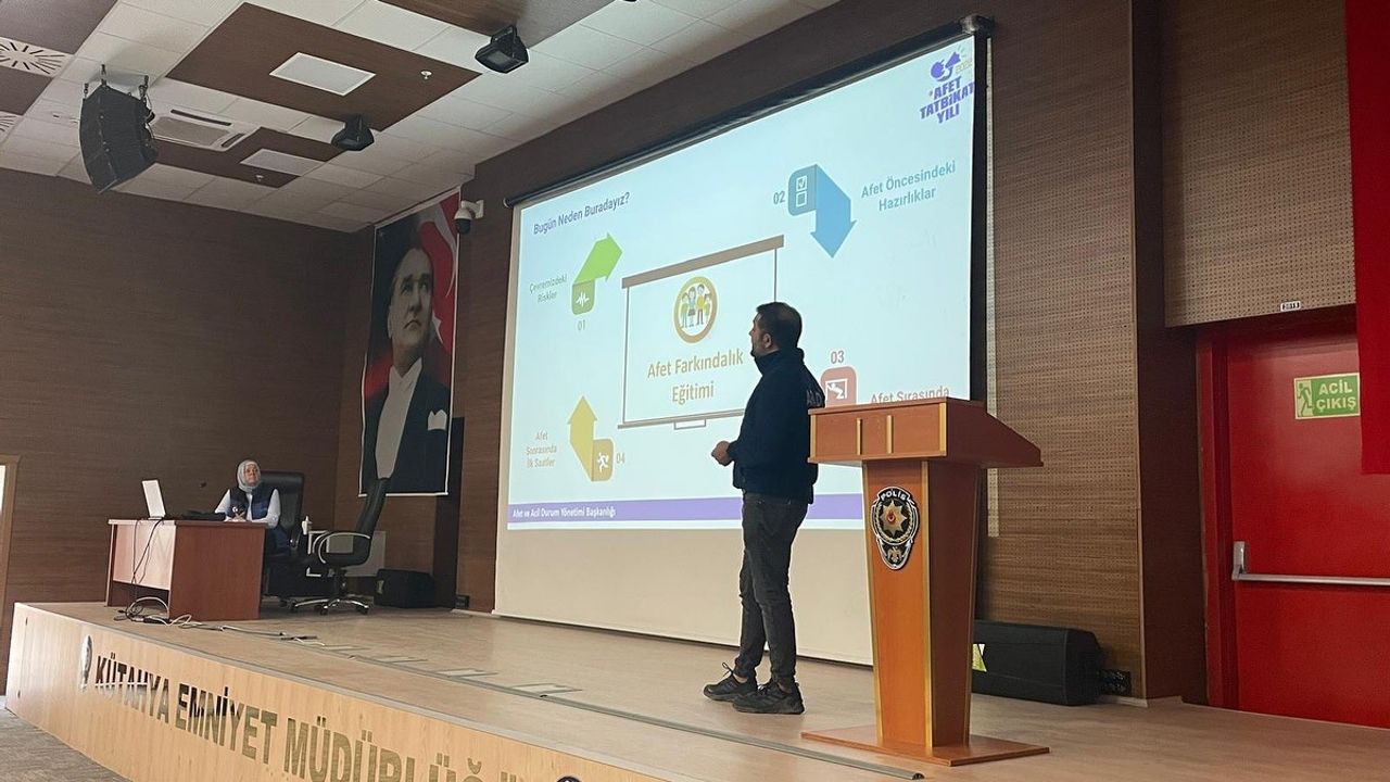 Kütahya İl Emniyet Müdürlüğü personeline teorik ve uygulamalı afet farkındalık eğitimi verildi.