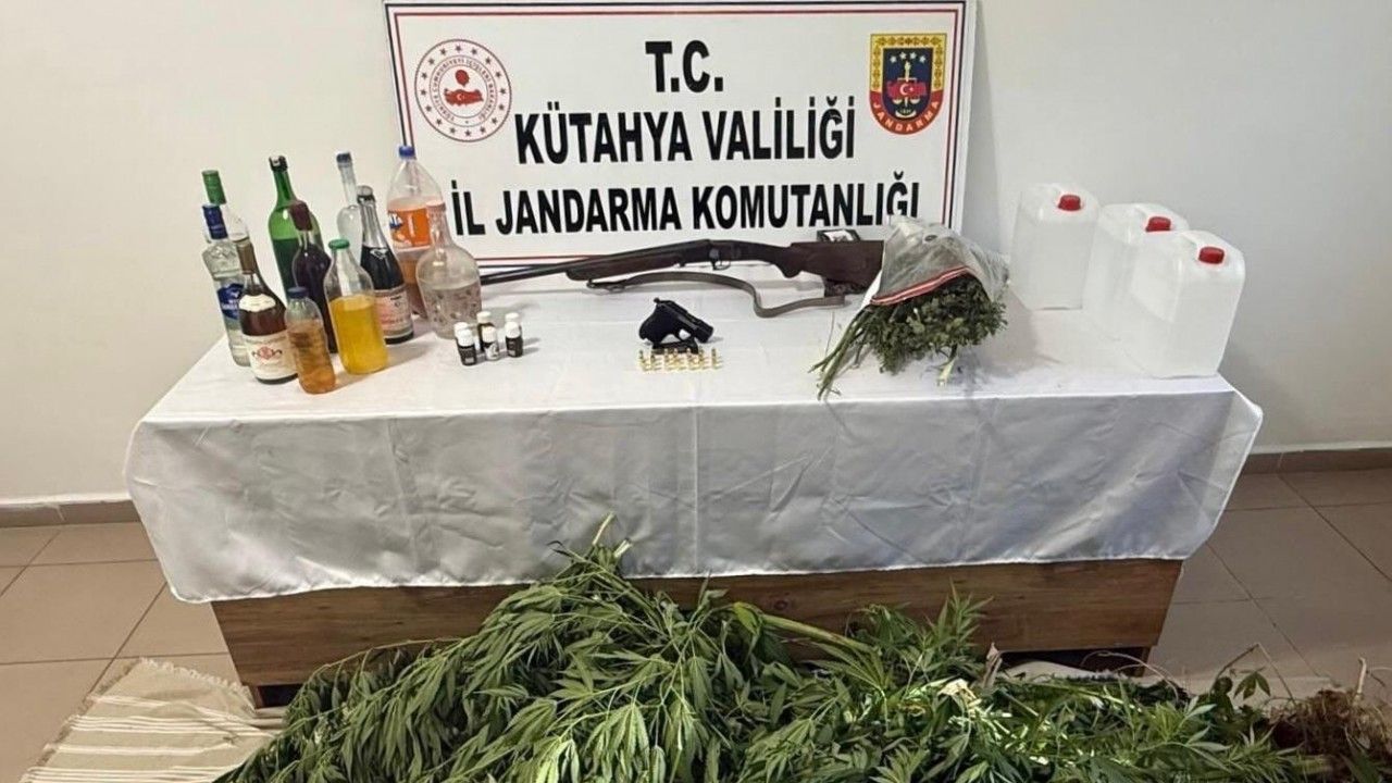 Gerçekleştirilen operasyonda; 406 gram kubar esrar, 7 kök kenevir, 12 litre sahte/kaçak alkollü içki, 15 litre etil alkol, 6 adet aroma verici kit, 1 ruhsatsız tabanca ve 1 av tüfeği ele geçirildi.