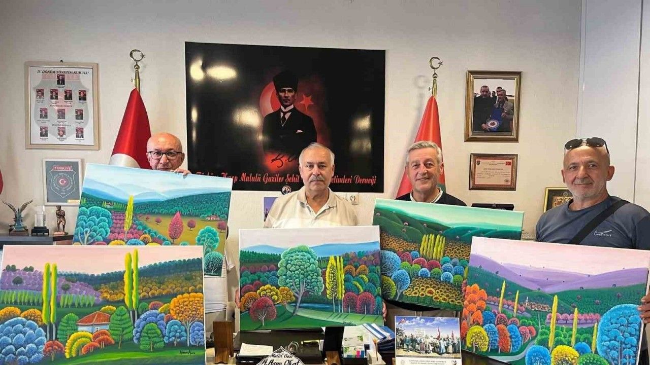 Emekli polis memuru ressam Hasan Kara, Harp Malulü Gaziler, Şehit, Dul ve Yetimleri Derneği Kütahya Şubesi’ne gelir getirmesi amacıyla 5 eserini hediye etti.