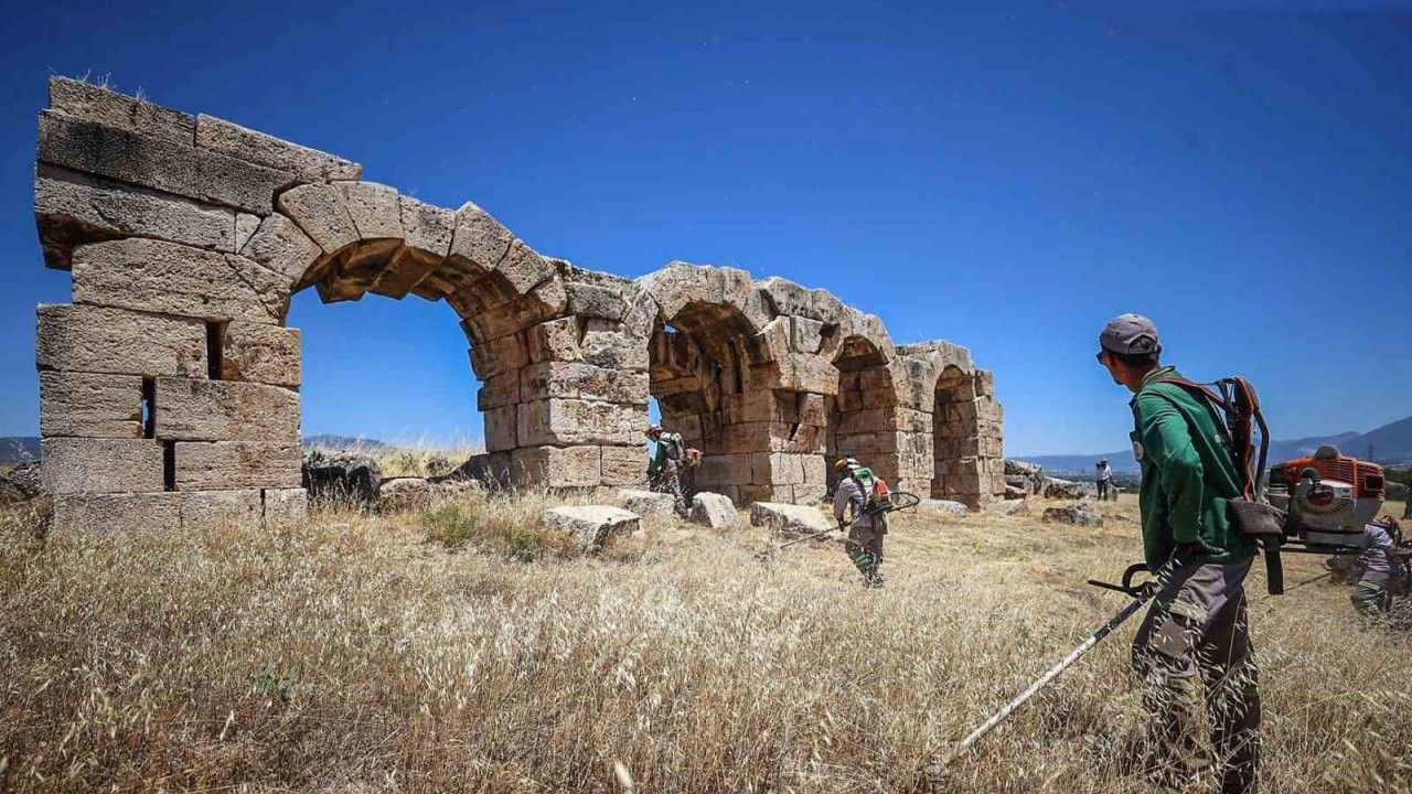 UNESCO Dünya Mirası Geçici Listesinde yer alan Laodikya Antik Kentinde, yangın tehlikesi oluşturabilecek kurumuş yabani otları temizledi.