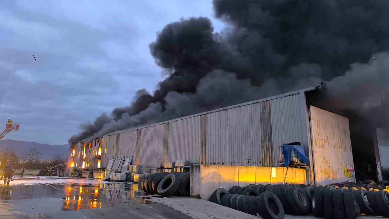 Yangın, Dörtyol ilçesi Yeşilköy Mahallesi'nde bulunan ULTRANS lojistiğe ait lastik deposunda çıktı. İhbar üzerine bölgeye itfaiye ekibi sevk edildi. Çevre ilçelerden de itfaiye ekiplerinin yönlendirildiği yangında alevlerle mücadele sürüyor.