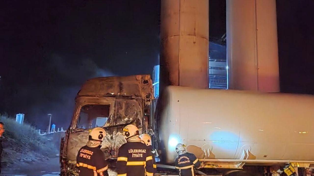 Kırklareli’nin Lüleburgaz ilçesinde bir şantiyede bulunan tankerde çıkan yangın, itfaiye ekipleri tarafından söndürüldü.