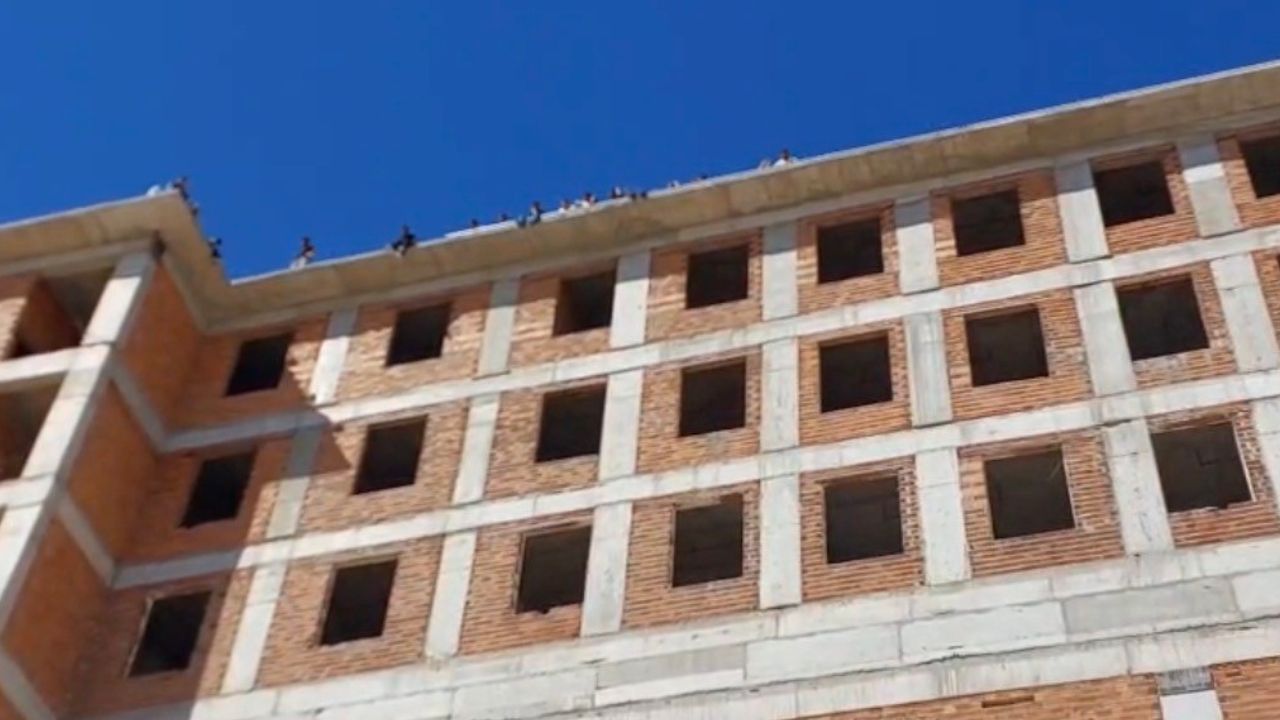 Gaziantep’in Nizip ilçesinde yapımı süren adliye binasında çalışan işçiler uzun süredir maaşlarını alamadıkları iddiasıyla binaya çıkarak toplu intihara kalkıştı.