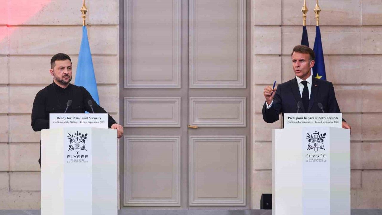 Fransa Cumhurbaşkanı Emmanuel Macron, Paris’teki Gönüllüler Koalisyonu Zirvesi’nin ardından Ukrayna Devlet Başkanı Vladimir Zelenskiy ile ortak basın toplantısı düzenledi. Gönüllüler Koalisyonu mensubu müttefik ülkelerin liderlerinin yanı sıra ABD Başkanı Donald Trump’ın da uzaktan bağlandığı çevrim içi zirvenin ardından Elysee Sarayı’nda gerçekleştirilen basın toplantısında Macron, "Bugün itibarıyla bir güvenlik garantisi olacak şekilde Ukrayna’ya asker göndermek ve sahada, denizde ya da havada varlık göstermek için resmen taahhütte bulunan 26 ülke var" ifadelerini kullandı.