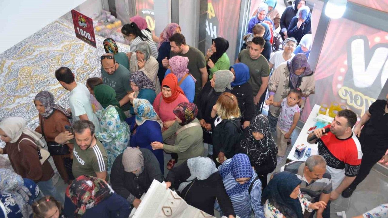 Mağazanın ilk müşterisi Cuma Kılınç, "Sabah saat yedide ilk ben geldim. Hediye halımı aldım çok memnun kaldım" dedi.