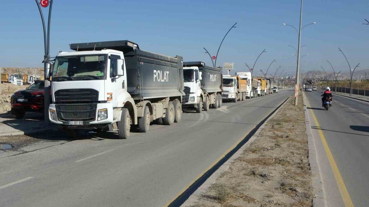 Malatya’da hafriyat taşımacılığı yapan kamyon sürücüleri, son dönemde kendilerine kesilen trafik cezalarına tepki göstererek şehir mezarlığı yakınlarındaki döküm sahası önünde eylem yaptı.