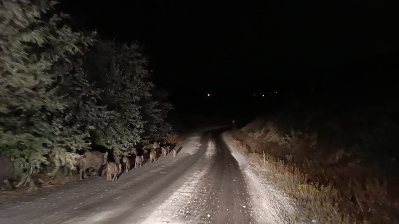 Malatya’nın Akçadağ ilçesinde yaklaşık 20 yaban domuzundan oluşan sürü, cep telefonu kamerasıyla görüntülendi.