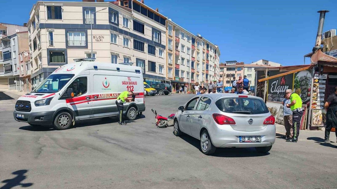 Edinilen bilgilere göre, Şehit Temizer Caddesi’nde Necmettin Y. (74) idaresindeki 59 AET 967 plakalı otomobil, pazar yerine dönüş yaptığı sırada karşı yönden gelen 34 DBB 222 plakalı motosikletle çarpıştı. Kazada motosiklet sürücüsü Yusuf A.A. hafif şekilde yaralandı. Olay yerine gelen sağlık ekipleri yaralı sürücüye ilk müdahaleyi yaparken, polis ekipleri kazayla ilgili inceleme başlattı.
