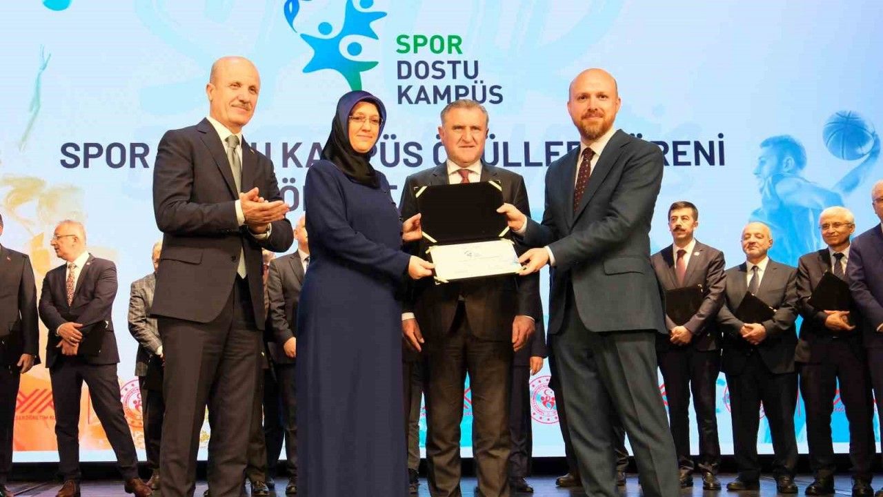 Selamlama konuşmalarının ardından, kriterleri sağlayarak "Spor Dostu Kampüs" unvanı alan Manisa Celal Bayar Üniversitesi Rektörü Prof. Dr. Rana Kibar, ödülü İlim Yayma Vakfı Mütevelli Heyeti Başkanı Necmettin Bilal Erdoğan, YÖK Başkanı Prof. Dr. Erol Özvar ve Gençlik ve Spor Bakanı Osman Aşkın Bak’ın elinden aldı.