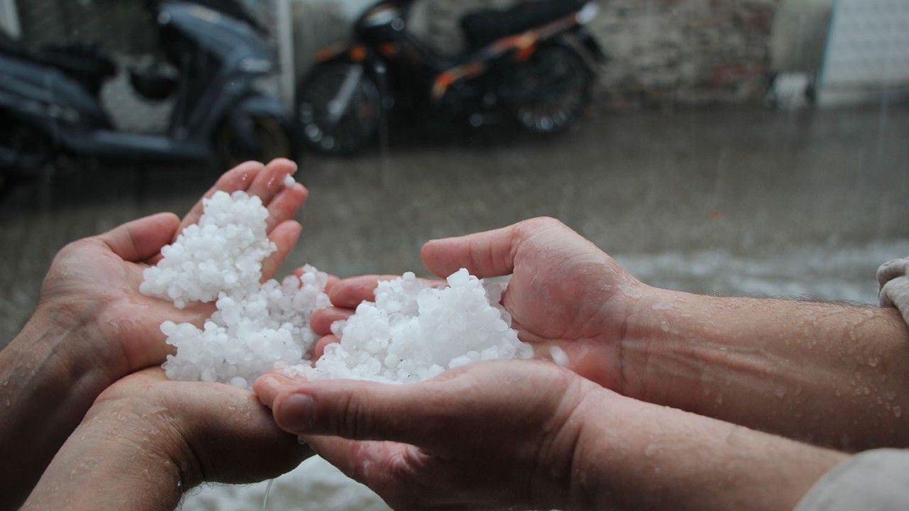 Manisa’nın Kula ilçesinde öğle saatlerinde aniden bastıran dolu ile karışık sağanak yağış, hayatı olumsuz etkiledi. Misket büyüklüğünde yağan dolu ve kuvvetli sağanak nedeniyle birçok cadde ve sokak sular altında kaldı.