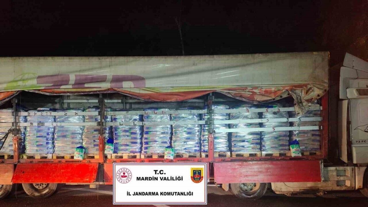 Mardin’in Artuklu ilçesinde jandarma ekiplerince bir tırda yapılan aramada 25 ton 500 gram sahte toz deterjan ele geçirildi.