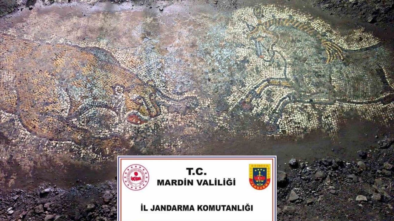 Mardin’de jandarma ekiplerince tarihi eser kaçakçılığına yönelik düzenlenen "Anadolu Mirası" operasyonunda, geç Roma dönemine ait olduğu değerlendirilen yaklaşık 1500 yıllık mozaik bulundu.
