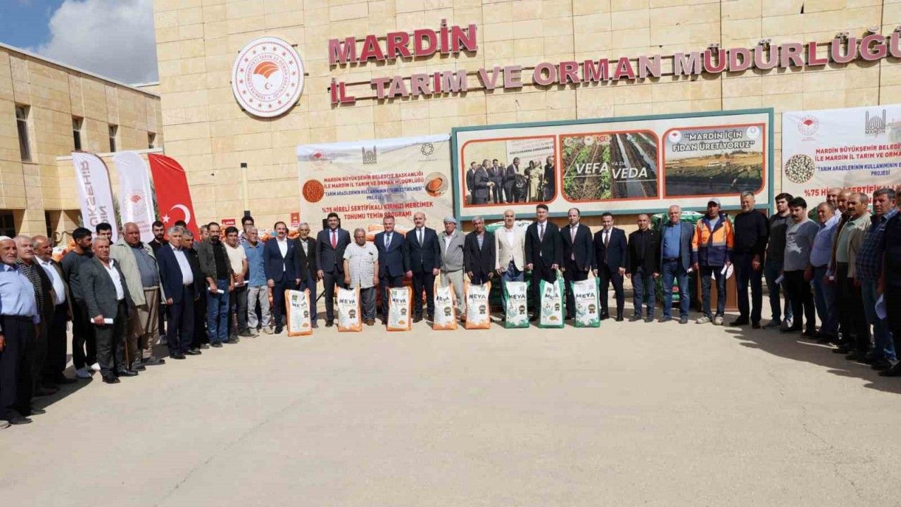 Tarım ve Orman Bakanlığı tarafından yürütülen Tarım Arazilerinin Kullanımının Etkinleştirilmesi Projesinde, Mardin Büyükşehir Belediyesi ve Tarım ve Orman İl Müdürlüğü ile işbirliğiyle gerçekleştirilen "Sertifikalı Kırmızı Mercimek ve Nohut Tohumu Temini Programı" çerçevesinde 371 üreticiye yaklaşık 96 ton tohum, düzenlenen törenle dağıtıldı.