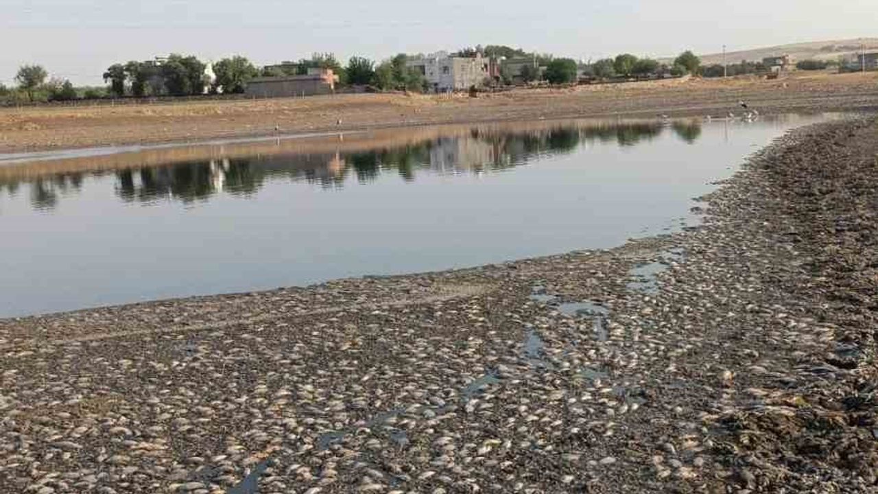 Mardin’de suyu çekilen gölette binlerce balık telef oldu.