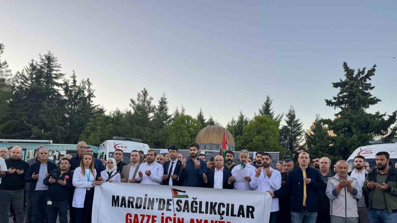 Mardin’de sağlık çalışanları tarafından Gazze’deki sağlıkçılara destek amacıyla basın açıklaması yapıldı.