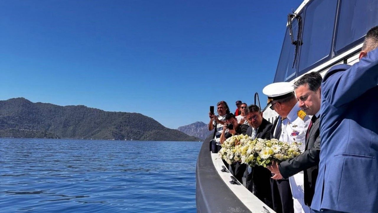 Atatürk Anıtı’nda düzenlenen çelenk sunma töreni Aksaz Deniz Üs Komutanlığı bandosu eşliğinde saygı duruşu ve İstiklal Marşı’nın okunmasının ardından, açılış konuşması ile sona erdi. Törenin bitiminde protokol üyeleri, Sahil Güvenlik Botu ile denize açılarak, Gazi Mustafa Kemal Atatürk ve tüm deniz şehitleri anısına denize çelenk bıraktı. Marmaris Su Sporları Derneği’ne bağlı sporcular denizde gösteri yaparak sahil güvenlik botuna eşlik ederek renkli görüntüler oluşturdu.