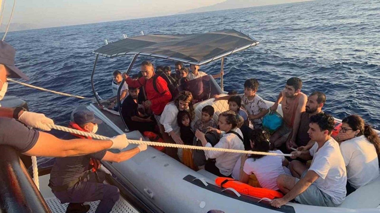 Muğla’nın Marmaris ilçesinde yasa dışı yollardan Yunanistan adalarına geçmeye çalışan ve içinde 20’si çocuk 35 düzensiz göçmen ile 6 göçmen kaçakçılığı şüphelisinin bindiği bot arıza yapınca açık denizde sürüklenmeye başladı.