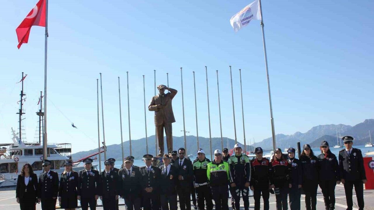 Marmaris Atatürk Meydanı’nda düzenlenen törende Marmaris İlçe Emniyet Müdürü Selçuk Özdemir’in Atatürk Anıtı’na çelenk sunmasının ardından saygı duruşu ve İstiklal Marşı okundu. Marmaris İlçe Emniyet Müdürü Selçuk Özdemir, İlçe jandarma komutanı Binbaşı Berker Dongul, İlçe Milli Eğitim Müdürü Serap Aksel, Marmaris Milli Parklar Müdürü Mesut Gümüş, Marmaris Ticaret Odası Başkanı Mutlu Ayhan, Muhtarlar, Marmaris Muharip Gaziler Derneği üyeleri, siyasi partiler, STK’lar ilçedeki kurum ve kuruluş müdürleri ve Marmaris’te görevli polisler katılım sağladı.