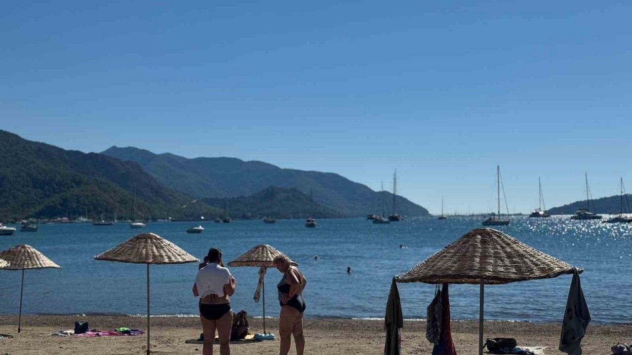 Yerli ve yabancı turistlerin yoğun ilgi gösterdiği Türkiye’nin incisi Marmaris’te hava sıcaklıkları 22 ile 27 derece arasında hissediliyor. Marmaris Halk plajında denize girenler, deniz suyunun hala sıcak olduğunu belirtiyor. Rusya’dan tatile geldiğini söyleyen bir turist, "Marmaris’te hava çok güzel, denize hâlâ girebildiğimiz için kendimizi şanslı hissediyoruz." dedi.