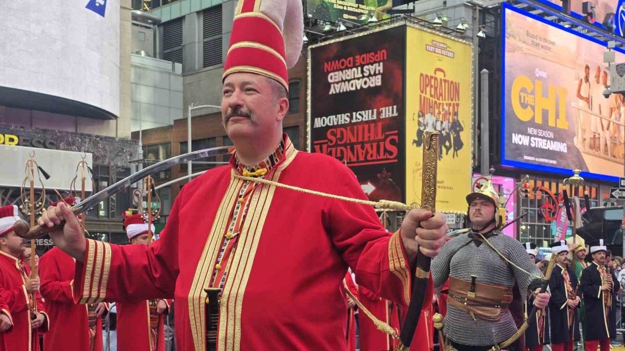 ABD’nin New York kentinde düzenlenen Geleneksel Türk Günü Yürüyüşü ve Festivali çerçevesinde Times Meydanı’nda sahne alan Milli Savunma Bakanlığı Mehteran Birliği, izleyenlere tarihi bir müzik ziyafeti sundu. 60 kişilik ekibin yer aldığı gösteride, Osmanlı dönemine ait marşlar ve geleneksel ezgiler yankılandı.