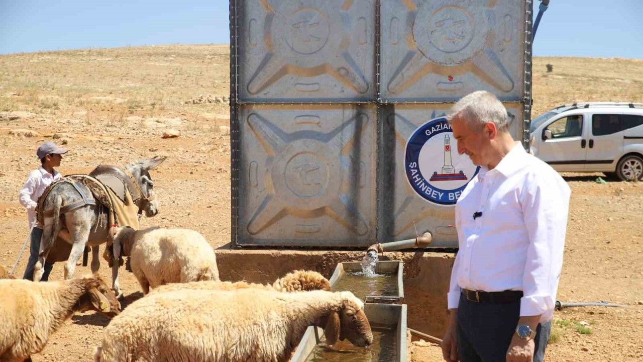 Mera alanlarına 11 adet güneş panelli su kuyusu açtıklarını söyleyen Tahmazoğlu, "Hayvancılığa her yıl yem desteğinden dolayı da hayvan sayımızda yüzde 50 bir artış var. Hayvan yetiştiricilerimiz, ‘meralarda su bulmakta zorlanıyoruz, tankerlerle su getiriyoruz ve o suda yetmiyor’ dediler. Hayvan yetiştiricilerimizden böyle bir talep geldi. Bizde Şahinbey Belediyesi olarak 11 meramıza su kuyusu açtık. Su kuyularının yanına güneş enerji panelleri koyduk. Kuyuların elektriğini güneş panelleri ile sağlıyoruz. Su kuyusunun yanına koyduğumuz depoda suyu depoluyoruz, su teknelerinde hayvanlar gelip su içebiliyorlar. Eğer bunu yapmasaydık, çoban kardeşimizin de söylediği gibi hayvanlarına su vermek için kilometrelerce git-gel yapıyorlardı. Fakat şu anda meranın ortasında su var, hayvanlar gelip bu sudan istifade ediyorlar. Sadece koyunlar değil, burada yaşayan her türlü canlı gelip bu sudan istifade ediyor. Çobanlarımızda, bizde memnunuz. Tarım ve hayvancılığın gelişmesi için bugüne kadar olduğu gibi bundan sonra da çiftçilerimize destek olmaya devam edeceğiz" diye konuştu.