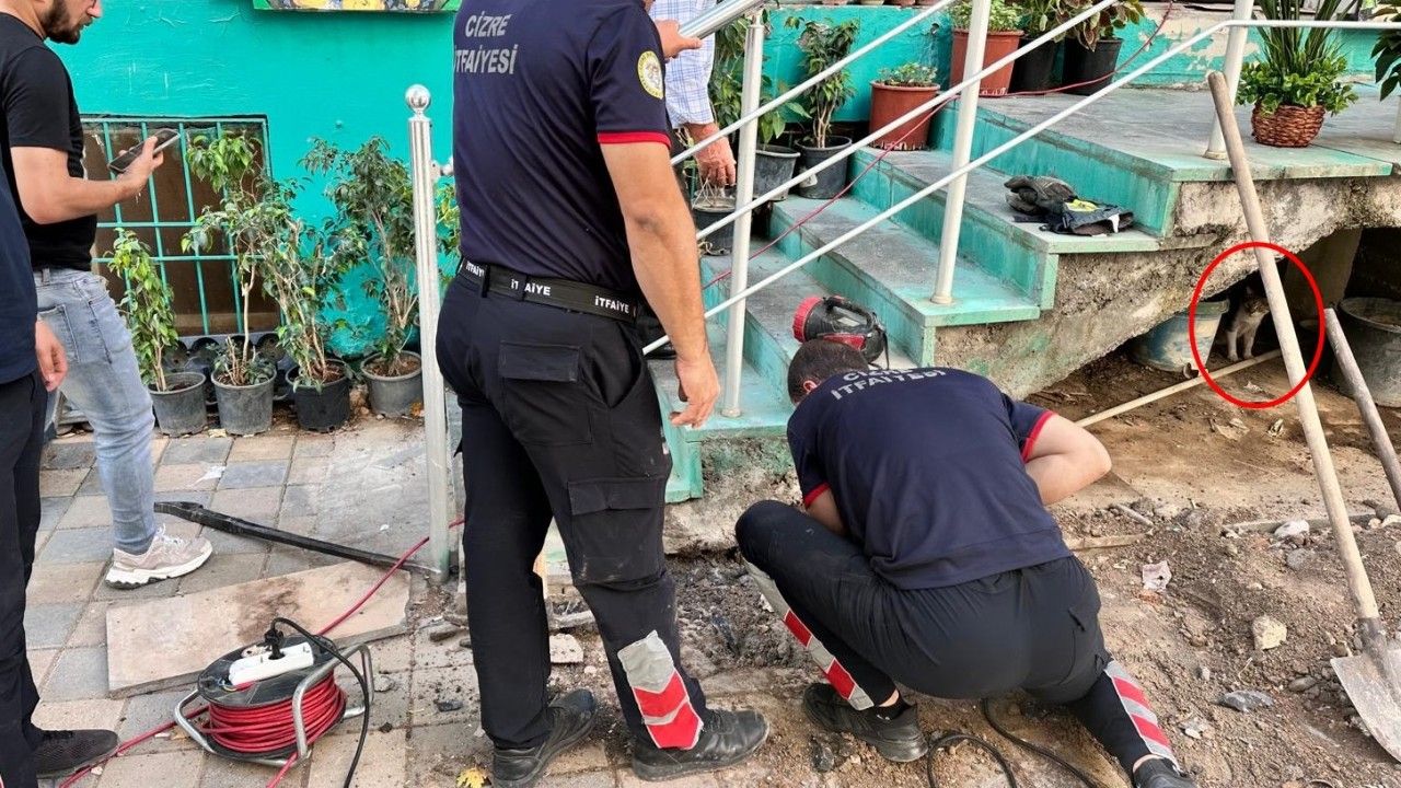 Şırnak’ın Cizre ilçesinde bir iş yerinde merdiven boşluğuna sıkışan yavru kedi, itfaiye ekiplerince kurtarıldı. Yavrusunun başından ayrılmayan anne kedi ise görenleri duygulandırdı.