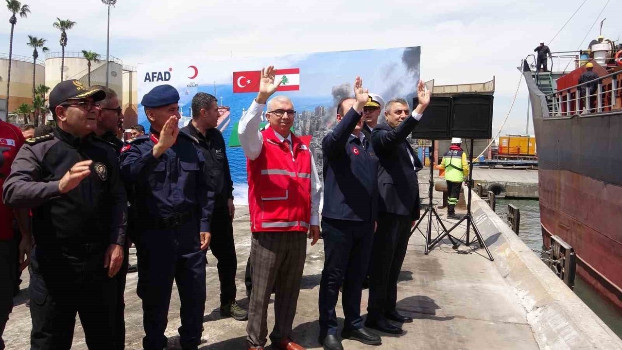 Lübnan'da yerinden edilen siviller için Türkiye tarafından hazırlanan insani yardım gemisi, Uluslararası Mersin Limanı'ndan Beyrut'a uğurlandı.