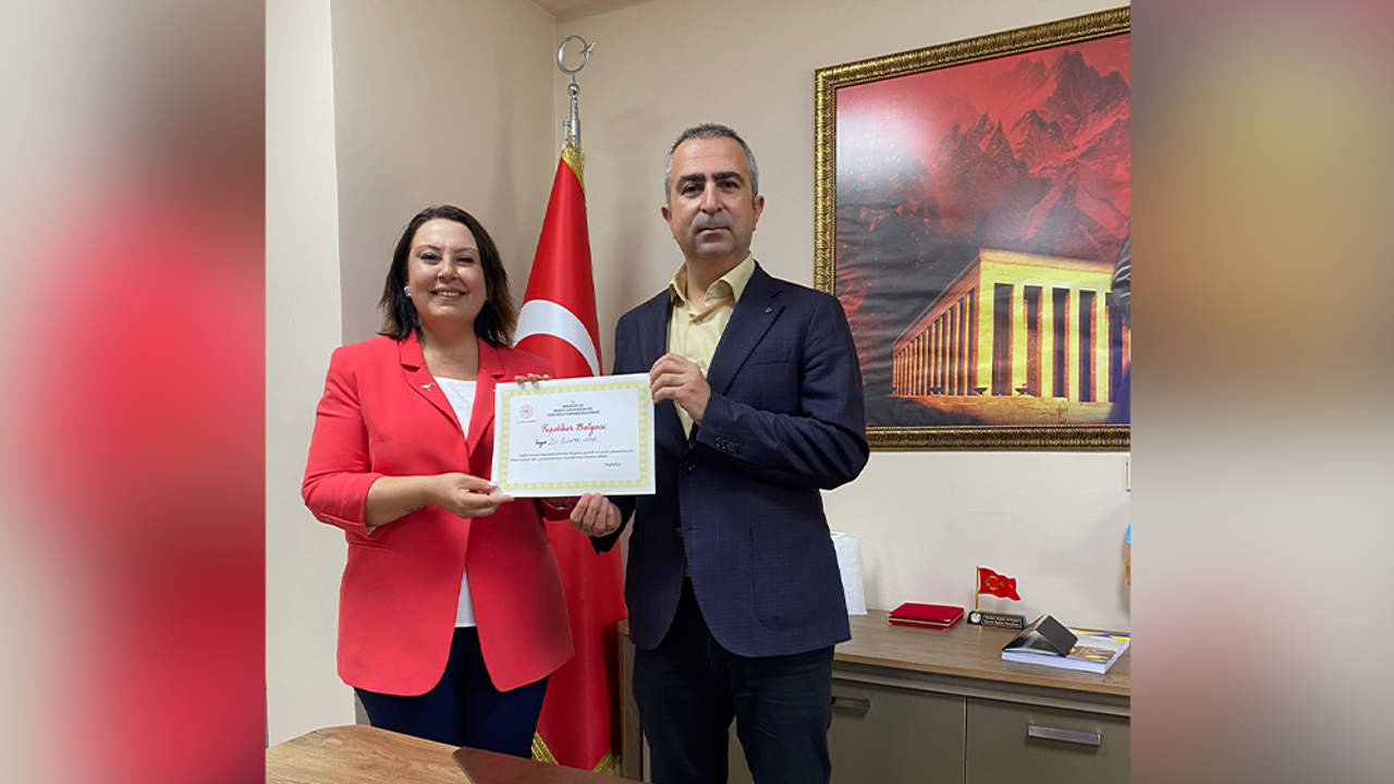 Sağlık okuryazarlığı ile ilgili çalışmalarından dolayı Mersin Toros Devlet Hastanesi Başhekimi Op. Dr. Özgür Ozan Karak tarafından, Toros Devlet Hastanesi Hemodiyaliz Ünitesi Sorumlu Hekimi ve “Toroslar’dan Gelen Sağlık” programının moderatörü Dr. Ruhsar Uçar’a teşekkür belgesi takdim edildi.