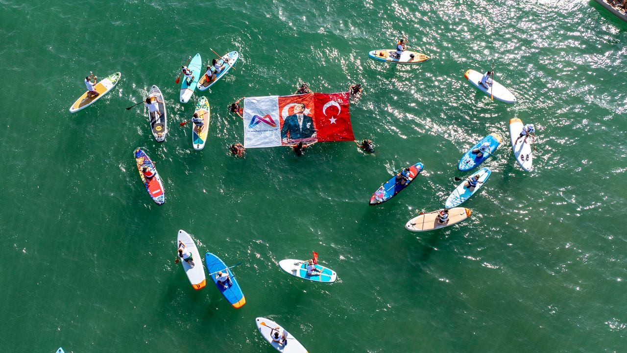 Denizde yelken ve SUP sporcularının yanı sıra dalgıçların da Türk Bayrağı açtığı etkinlikler, katılımcılar ve izleyiciler tarafından büyük beğeni topladı. Su sporları gönüllüleri, suyun üzerinde Atalarını andıklarını ve bayraklarını gururla dalgalandırdıklarını ifade ettiler