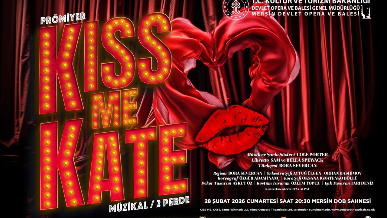 Mersin Devlet Opera ve Balesi (DOB), müzikal tiyatro tarihinin en önemli yapıtlarından biri olan "Kiss Me Kate"i görkemli bir prodüksiyonla sahneye taşıyor. İki perdelik müzikal komedi, Cole Porter’ın hafızalara kazınan enerjik müzikleri ve zengin görsel tasarımıyla Mersin Opera Sahnesi’nde Broadway atmosferi yaratacak.
