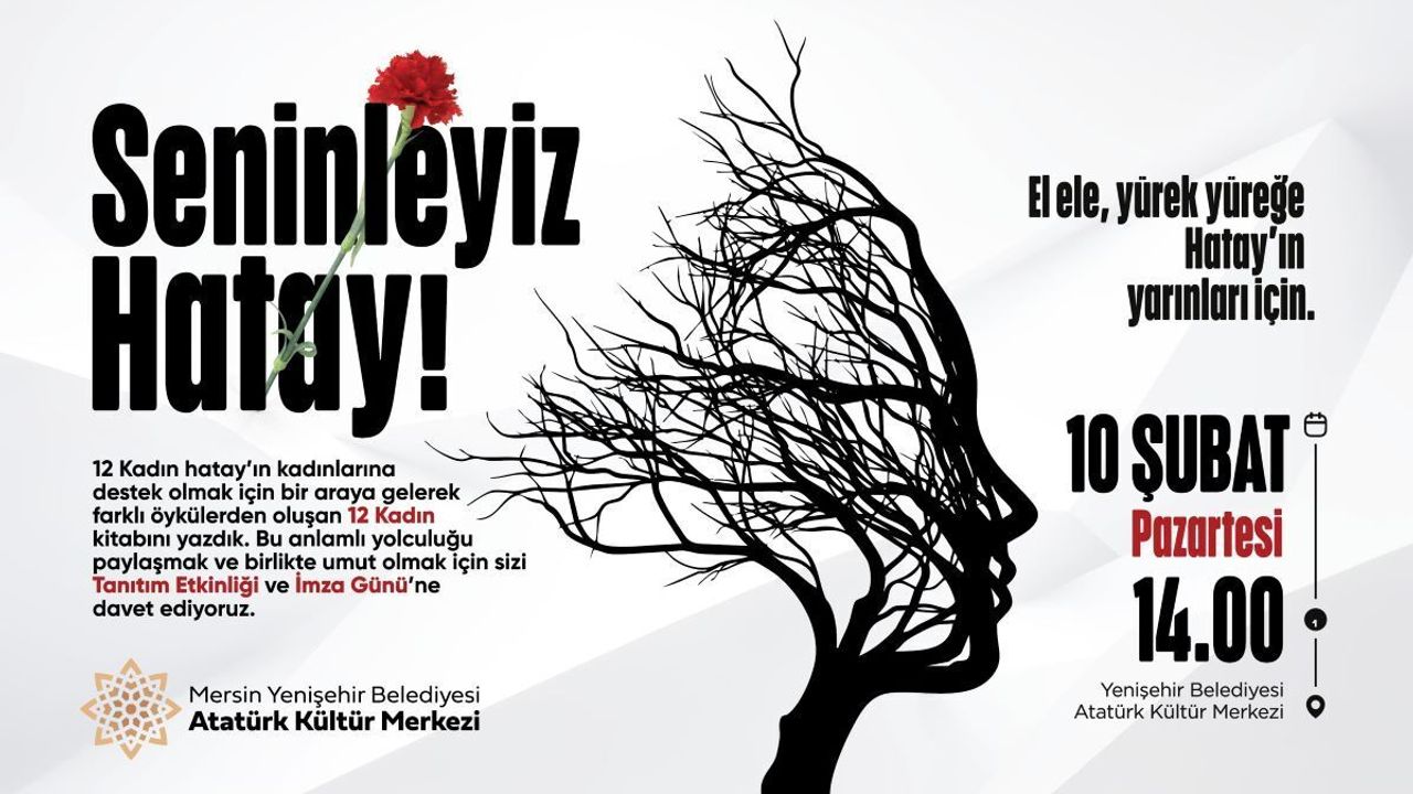 Hatay depremi sonrası yaraları sarmak ve dayanışmayı büyütmek amacıyla bir araya gelen "12 Kadın" kitabının yazarları, "Seninleyiz Hatay" mottosuyla Mersin’de özel bir etkinlik düzenliyor.