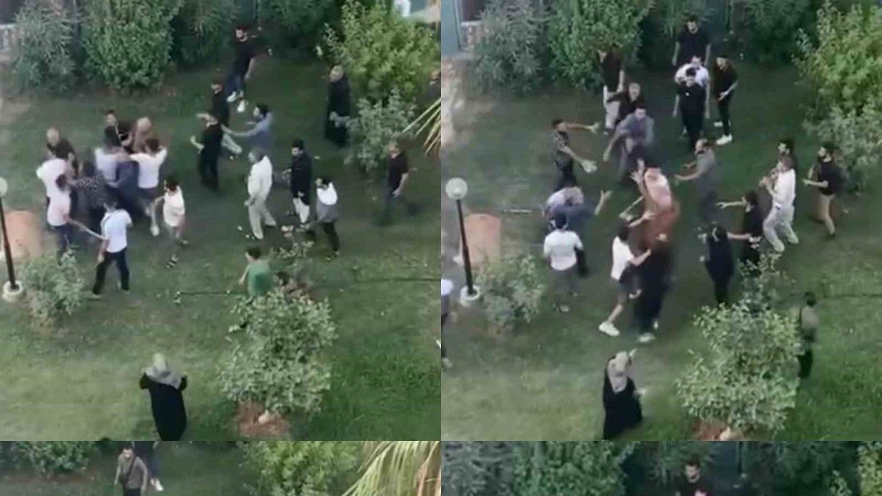Mersin’de bir site içerisinde iki grup arasında sopa ve sandalyelerin kullanıldığı kavga çıktı. O anlar cep telefonu kamerasına yansıdı.