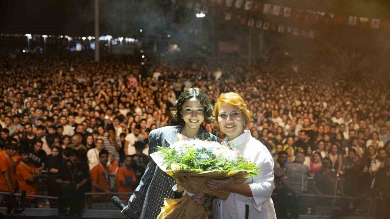 Köfn’den sonra sevilen sanatçı Zeynep Bastık sahneye gelerek Mersinlilere unutulmaz bir akşam yaşattı. Birbirinden güzel şarkılarını Mersinli gençlerle birlikte seslendiren Zeynep Bastık’a Başkan Vahap Seçer adına Bengi İspir Özdülger tarafından çiçek takdim edildi. Özdülger, "Başkanımız Vahap Seçer’in hepinize ve siz sevgili Zeynep Bastık’a selam ve sevgilerini getirdim. Sizleri burada ağırlıyor olmaktan çok mutluyuz gerçekten. Şehrimiz çok güzel, gençlerimiz çok güzel, kendini genç hisseden sevgili vatandaşlarımız çok güzel, biz çok güzeliz. Size de bu güzel şehirde bizimle beraber olduğunuz için çok teşekkür ediyoruz. Biz hepimiz sizleri çok seviyoruz" ifadelerini kullandı.