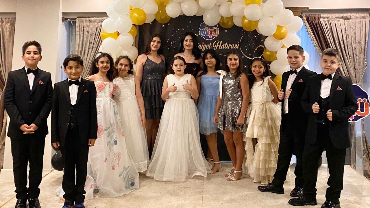 Ailelerin de yoğun ilgi gösterdiği mezuniyet etkinliğinde, çocuklar arkadaşları ve öğretmenleriyle vedalaşırken duygu dolu anlar yaşadı. Dans gösterileri ve toplu eğlencelerle renklenen etkinlikte, öğrenciler keplerini fırlatarak mezuniyetlerini kutladı. Etkinlikte ayrıca mezuniyet pastası da kesildi.