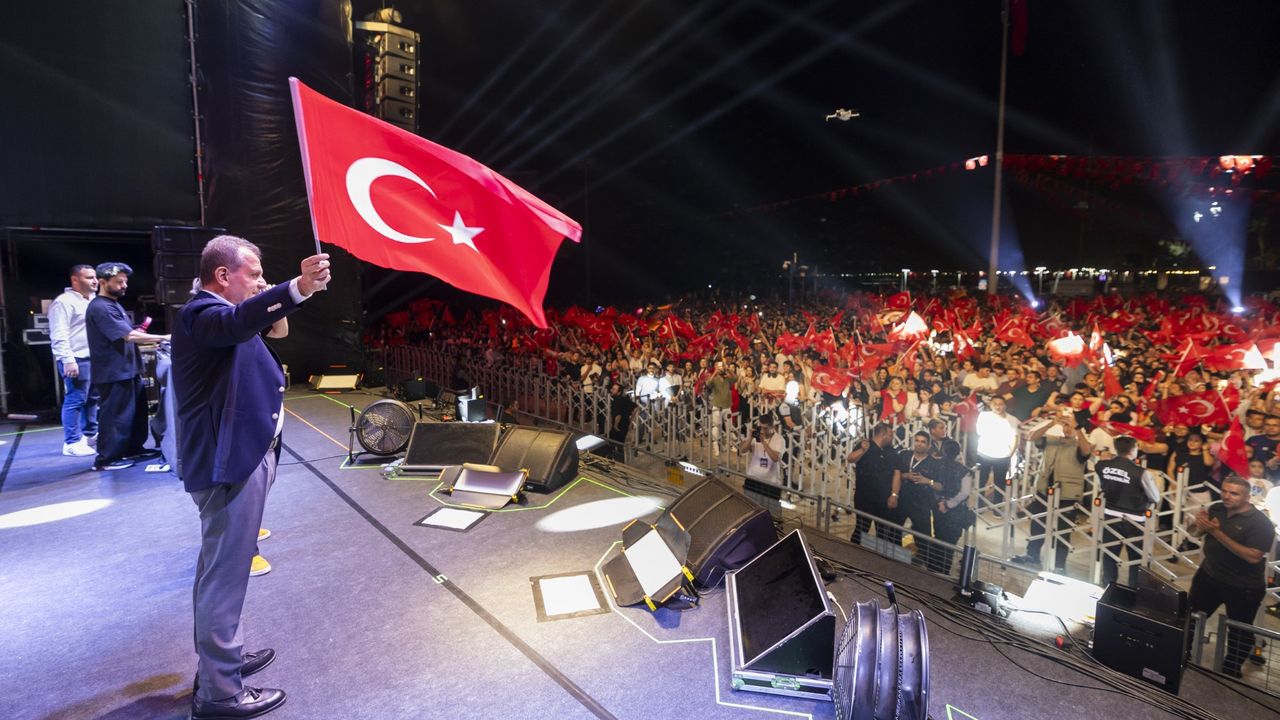Meydan, kırmızı beyaz Türk Bayrakları ile donanırken, Simge “Ben Bazen”, “Öpücem” ve “Miş Miş” gibi sevilen parçalarını seslendirdi. Ayrıca Mersin Büyükşehir Belediyesi Kent Orkestrası da konseri renklendirdi.