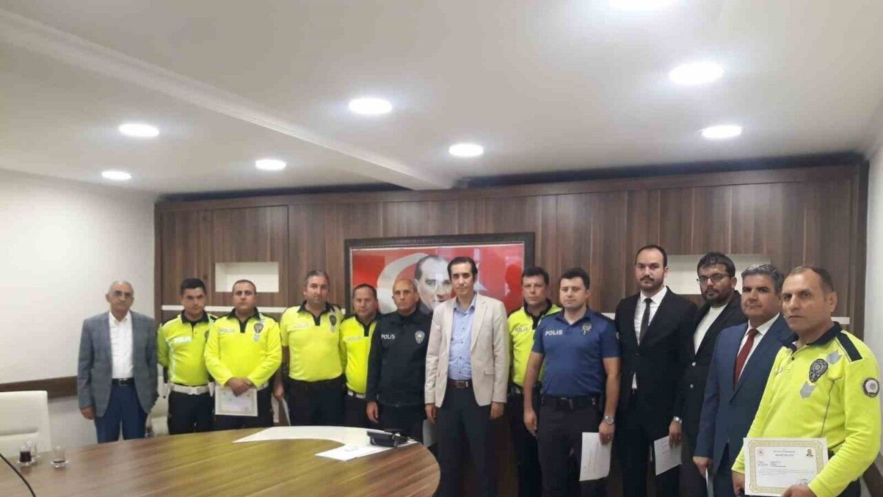 Mersin’in Bozyazı ilçesinde görev yapan 3 komiser ve 11 polis memuru başarılı çalışmalarından dolayı İlçe Kaymakamı Tuncay Topsakaloğlu tarafından ‘başarı belgesi’ ile ödüllendirildi.