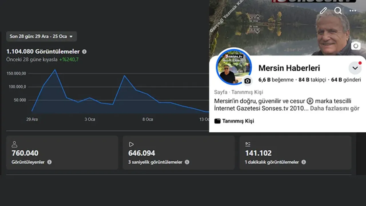 Facebook ve Instagram’da 1 milyon 600 binin üzerinde görüntülenme, sadece bir istatistik değil; yerel haberciliğin dijitalde nereye evrildiğinin de net bir göstergesi. Bu tablo, Mersin’de doğru, hızlı ve samimi haberciliğin karşılıksız kalmadığını gösteriyor.