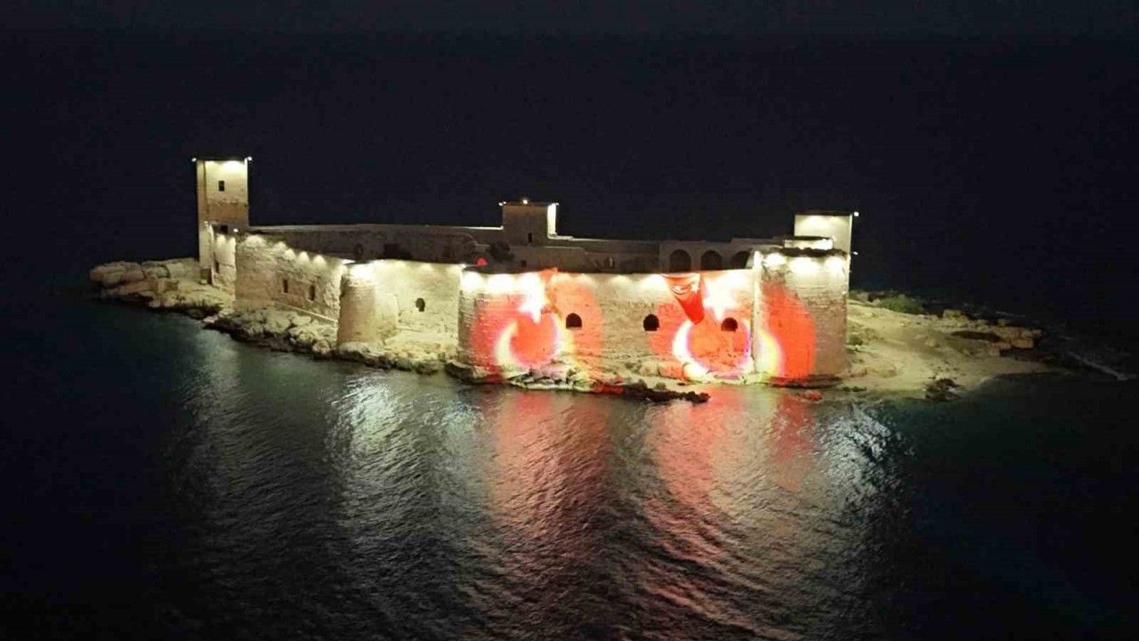 Mersin Erdemli’de bulunan şehrin şimgesi Kızkalesi, Cumhurbaşkanı Erdoğan’ın ’Terörsüz Türkiye’ çağrısıyla birlikte ’Ay yıldızla’ aydınlatıldı.