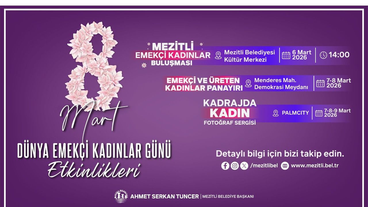 Tüm vatandaşları etkinliklere davet eden Mezitli Belediye Başkanı Ahmet Serkan Tuncer; "Kadınların emeği toplumun en güçlü temelidir. 8 Mart’ı Mezitli’de büyük bir dayanışma ve farkındalık içinde kutlayacağız" ifadelerini kullanarak toplumsal eşitlik vurgusu yaptı.