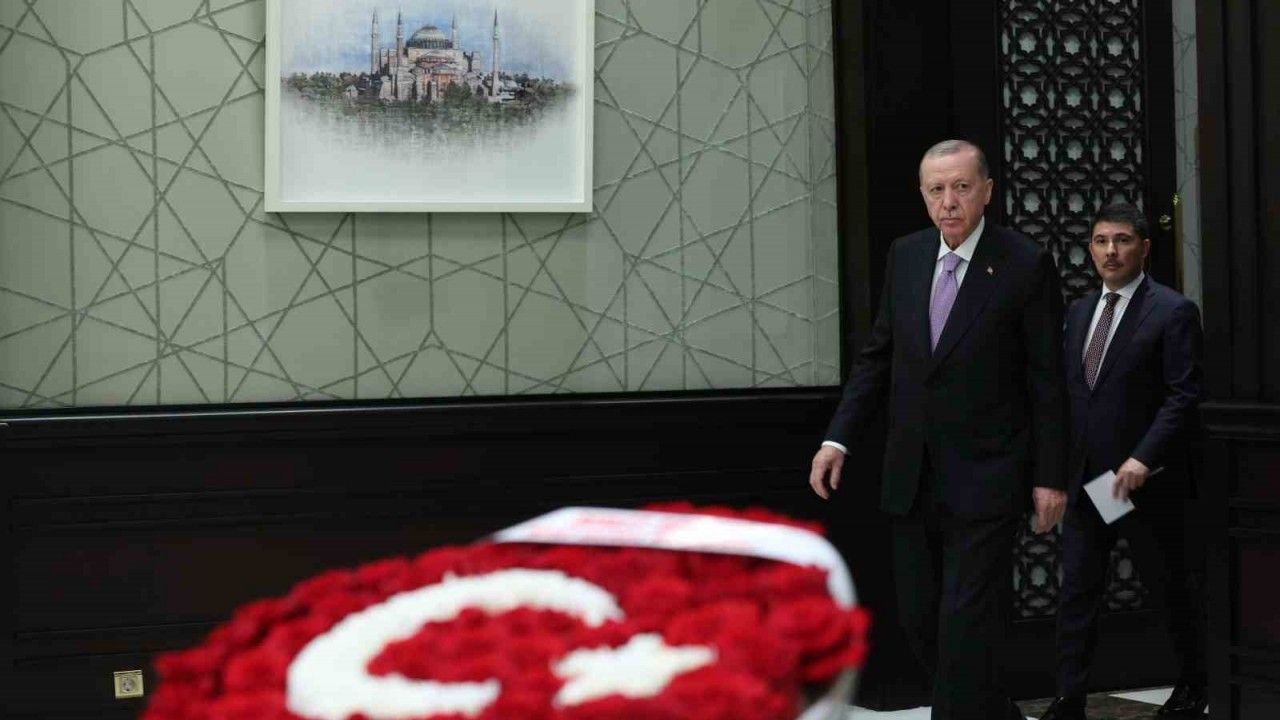 MHP Genel Başkanı Devlet Bahçeli, Cumhurbaşkanı Recep Tayyip Erdoğan başkanlığında toplanan Kabine’ye güllerden yapılmış ay yıldızlı çiçek gönderdi.