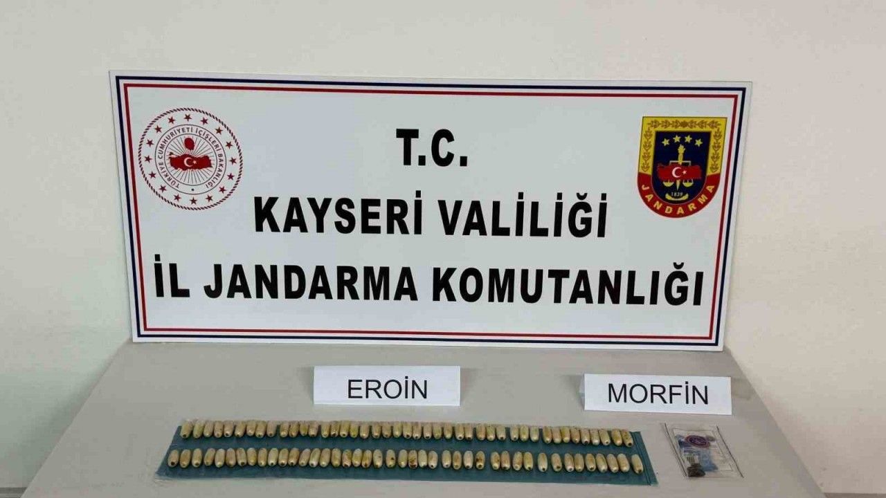 Edinilen bilgiye göre, İl Jandarma Komutanlığı ekiplerince Kocasinan-Beydeğirmeni mahallelerinde yol kontrol noktasında durdurulan ticari takside arama yapıldı. Yapılan aramada; yabancı uyruklu M.R.’nin üzerinde, midesinde ve bağırsaklarında 85 adet kapsül şeklinde toplam 888 gram uyuşturucu madde ele geçirildi. Şüpheli gözaltına alınırken olayla ilgili soruşturma başlatıldı.
