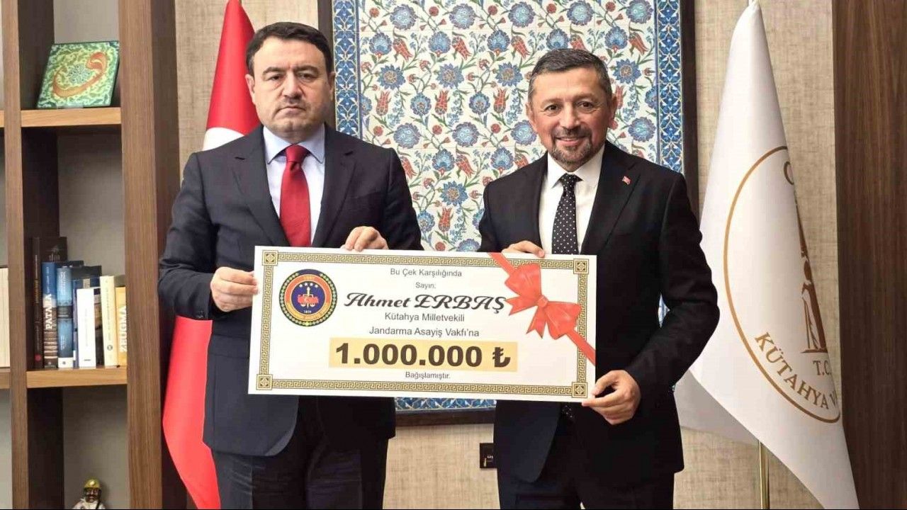 Milliyetçi Hareket Partisi (MHP) Kütahya Milletvekili Ahmet Erbaş, Jandarma Teşkilatına hizmet aracı alımı için Jandarma Asayiş Vakfına 1 milyon TL bağışta bulundu. Kütahya Valisi Musa Işın, yapılan bağıştan dolayı Milletvekili Erbaş’a teşekkür etti.