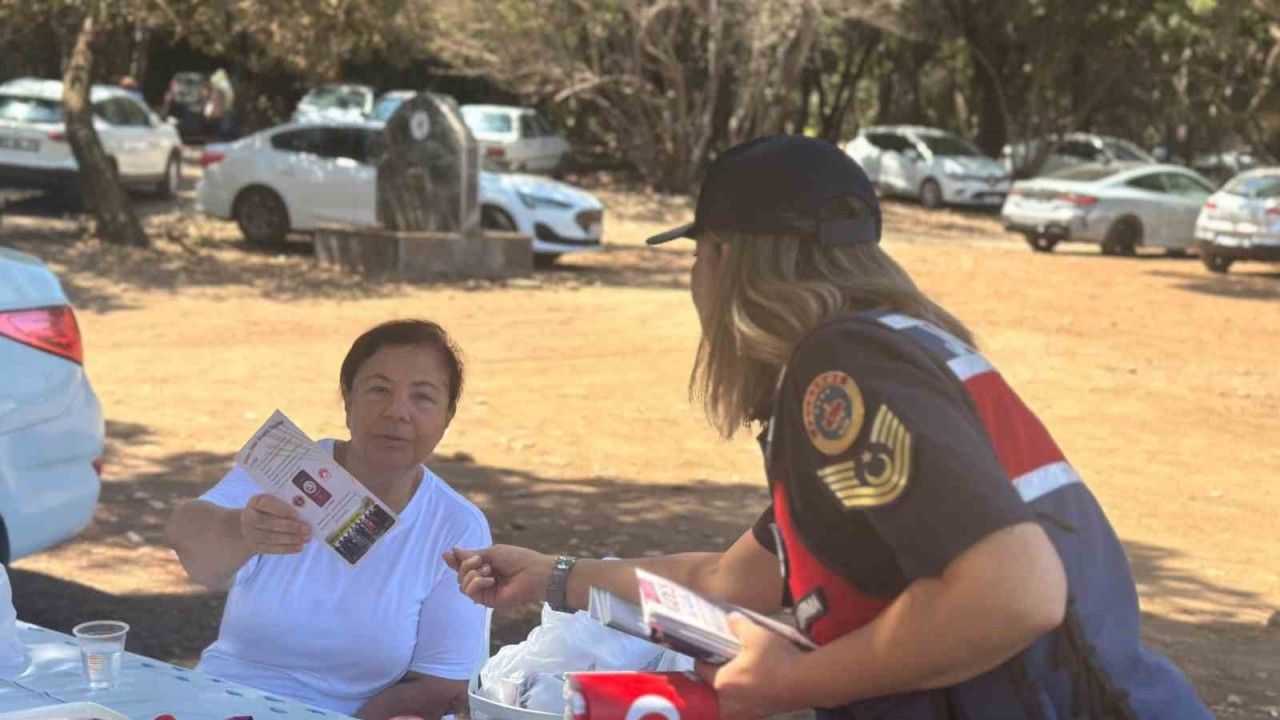 Aydın İl Jandarma Komutanlığı Aile İçi Şiddetle Mücadele ve Çocuk Kısım Amirliği ve Kuşadası Kavaklı Jandarma Karakol Komutanlığı personellerince, Kuşadası Milli Parkları ziyarete gelen vatandaşların huzur ve güvenliğini sağlamak, şiddetle mücadelede farkındalık oluşturmak amacıyla Kadın Destek Uygulaması (KADES) ve 6284 Sayılı Ailenin Korunması ve Kadına Karşı Şiddetin Önlenmesine Dair Kanun hakkında bilgilendirme faaliyeti gerçekleştirildi. Vatandaşlara, "KADES uygulamasının kullanımı, indirme ve acil durumlarda bildirim yöntemleri" detaylı olarak anlatılırken, 6284 Sayılı Kanun kapsamında şiddet mağdurlarının sahip olduğu haklar, koruyucu ve önleyici tedbirler hakkında bilgi verildi. Durumsal farkındalık oluşturmak amacıyla ayrıca broşür dağıtıldı, vatandaşların soruları yanıtlandı.