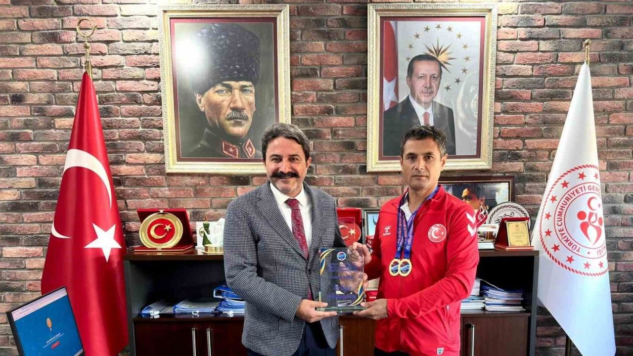 2025 Altın Palet Sualtı Görüntüleme Türkiye Şampiyonası ve Milli Takım Seçmeleri’nde şampiyon olan milli sporcu Erkan Balk, Gençlik ve Spor İl Müdürü Hasan Kalın’a ziyarette bulundu.