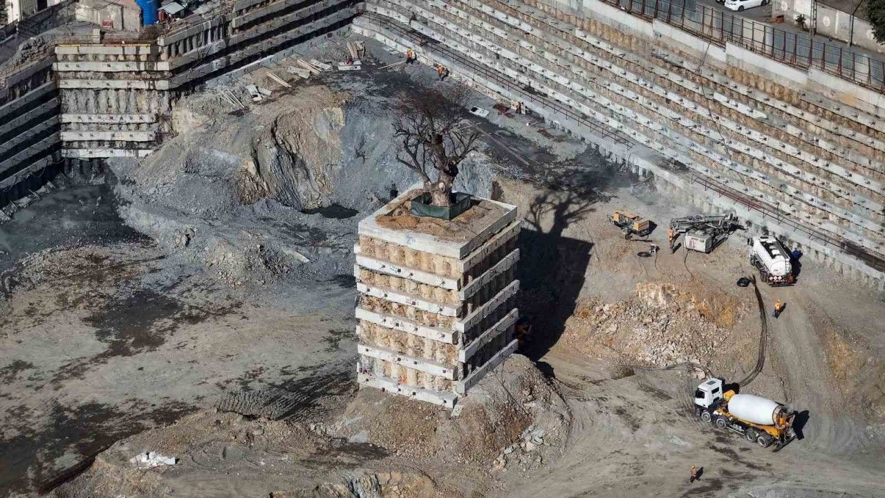 İstanbul’da yapımı süren lüks bir turizm projesinde onlarca ağacın kesilmesinin ardından tarihi özelliğe haiz tek ağaç, 28 tane beton fore kazıklarla oluşturulan 100 metrekarelik alanda muhafaza ediliyor. Beton blokların arasında sütün gibi oluşturulmuş toprak alanda tek kalan yaşlı ağaç, adeta doğanın betona karşı verdiği mücadeleyi simgeliyor. Yaklaşık 100 metre yüksekliğindeki ‘fore kazıklarla’ çevrili ağaç, beton yığınlarının ortasında adeta dimdik duran sessiz bir tanık niteliğinde. İnşaat sahasının ortasında onlarca metre yükseklikte tek başına kalan ağacın bakımının nasıl yapılacağı da tartışma konusu oldu. Görenlerin yapraklarının kuru kalması sebebiyle dikkatini çeken tarihi ağacın bakımı hakkında kimse bilgi sahibi değil. Bölgedeki ağaçların kesilmesinin tek tanığı olarak nitelendirilen yaşlı ağaç dron ile görüntülendi. Yüzlerce yıllık olduğu tahmin edilen ağacın bakımının yapılmaması ise tartışma konusu oldu.