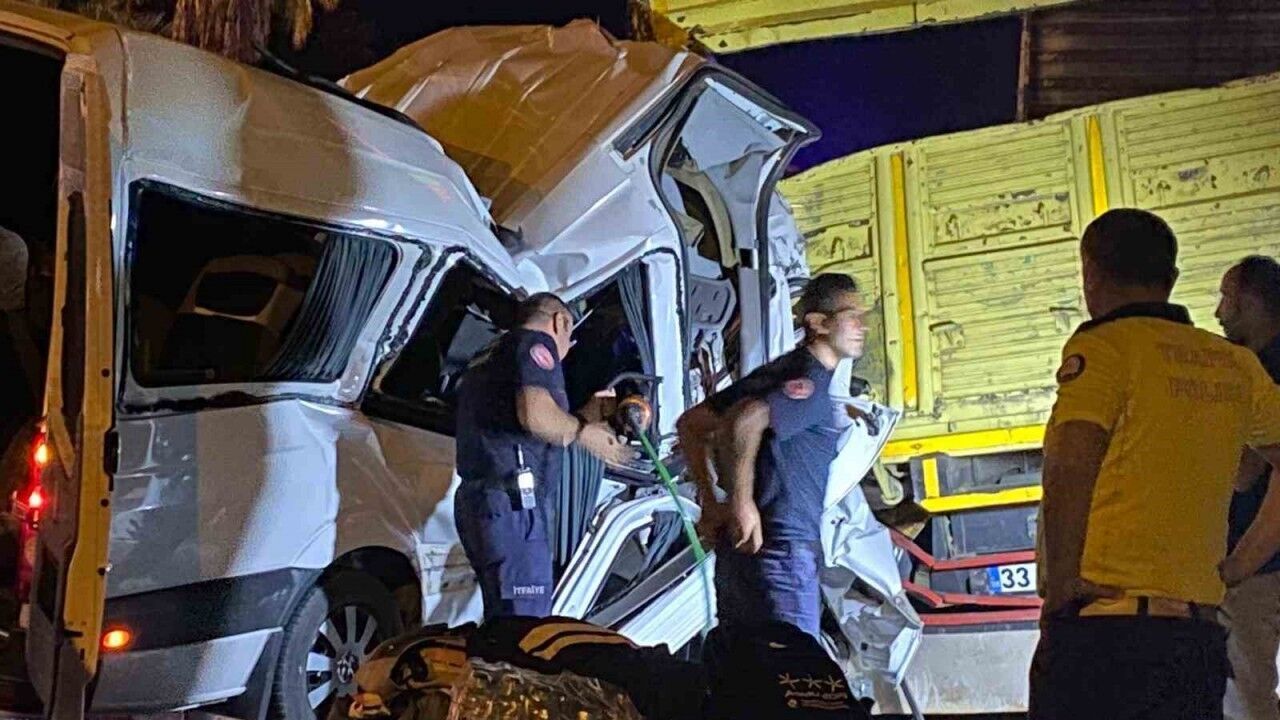 Kaza gece saat 01.00 sıralarında D 400 kara yolu üzerinde yaşandı. Edinilen bilgiye göre Hamit Şahin idaresindeki 31 ZF 009 plakalı tur minibüsü, Akçaalan Mahallesi’nde yolun sağ tarafında park halinde bulunan 33 N 5063 plakalı kamyona arkadan çarptı. Kazayı görenlerin ihbarı üzerine olay yerine sağlık ve kurtarma ekipleri sevk edildi. Sağlık ekiplerinin yaptığı ilk incelemede henüz ismi belirlenemeyen 2 kişinin hayatını kaybettiği belirlendi, yaralanan 9 kişi ise olay yerindeki müdahalenin ardından hastanelere sevk edildi.