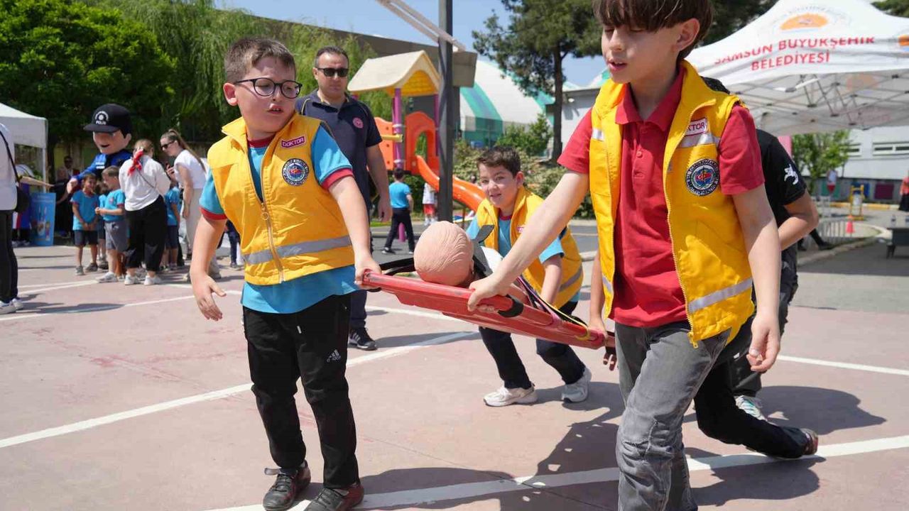 Samsun’da düzenlenen "Sağlıklı Çocuk, Sağlıklı Gelecek Şenliği" kapsamında ilkokul öğrencilerinden oluşan sağlık elçileri, diğer öğrencilere teorik ve uygulamalı sağlık bilgileri aktardı.