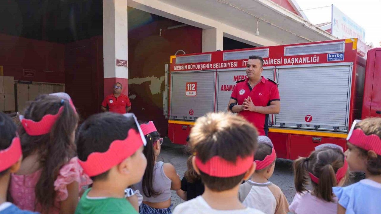 Mersin’in Tarsus ilçesinde kreş öğrencileri, itfaiyecileri ziyaret ederek hem haftalarını kutladı hem de yangın güvenliği hakkında bilgi edindi.