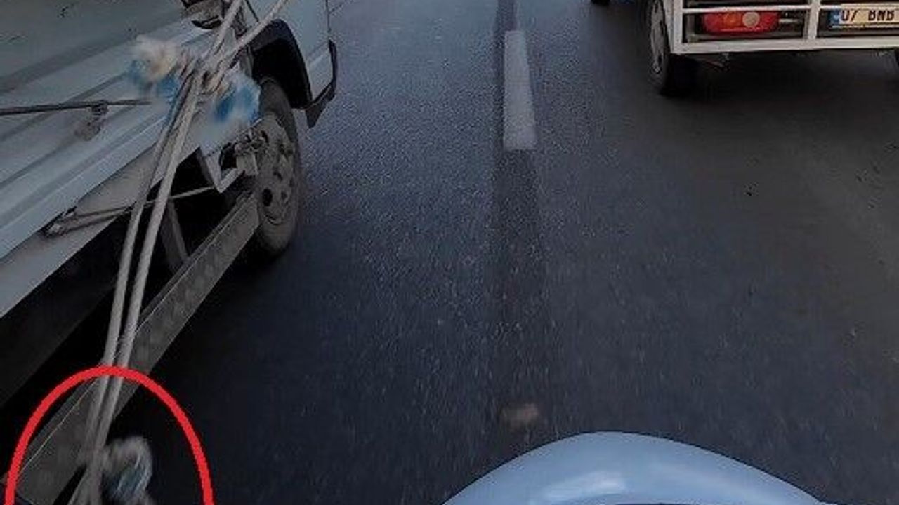 Antalya’nın Aksu ilçesi Serik Caddesi üzerinde seyir halinde olan bir motokurye, trafiğin yoğun olduğu sırada önündeki iki kamyonetin arasından geçmek için manevra yaptı. Ancak bu "boşluktan geçme" hamlesi, kamyonetlerden birinden sarkan görünmez bir tuzakla sonuçlandı. Sol şeritteki kamyonetin kasasından sarkan gevşek branda ipi, motosiklete takılarak sürücünün dengesini bir anda yitirmesine neden oldu.
