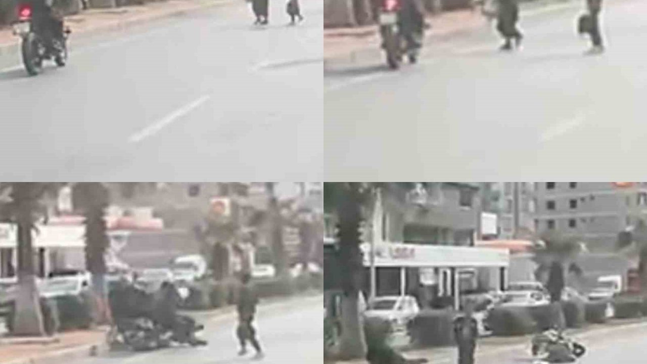 Kaza Anı Araç Kamerasında Öte yandan kaza anı, aynı güzergahta ilerleyen bir aracın kamerası tarafından kaydedildi. Görüntülerde; yaya geçidi bulunmayan noktadan yolun karşısına geçmek isteyen kadına motosikletin hızla çarpma anı ve sonrasında yaşanan savrulma anları yer aldı.